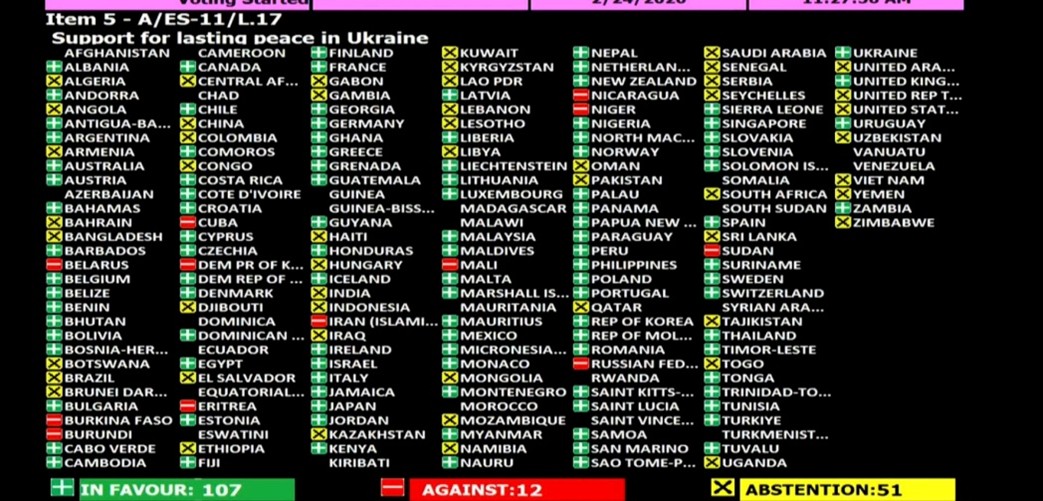 الأمم المتحدة تتبنى قراراً لدعم السلام في أوكرانيا والسودان يصوت ضد القرار