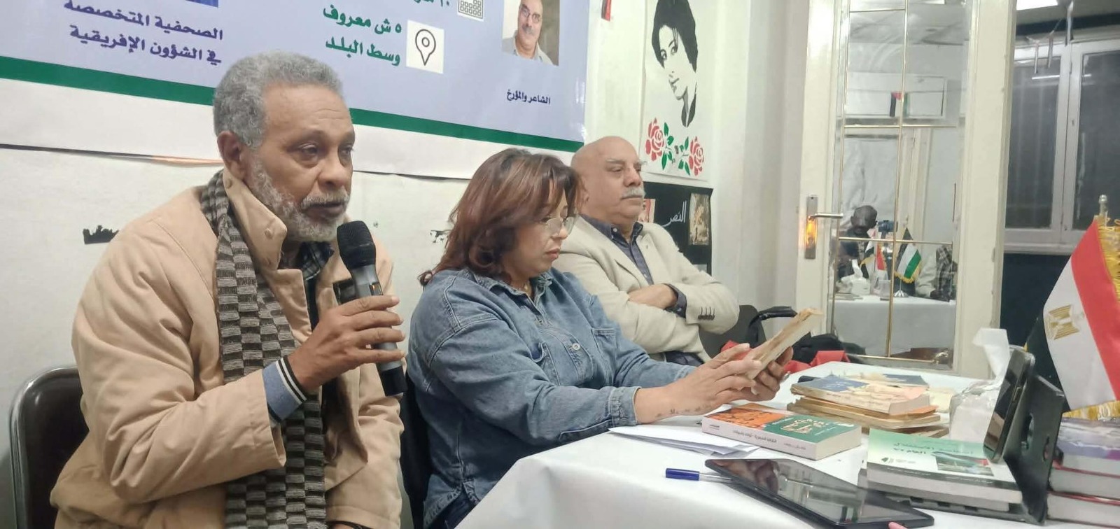 عقد منتدى إفريقيا يوم الثلاثاء 10 مارس 2026 ندوة ثقافية تحت عنوان “العلاقات الثقافية السودانية المصرية” أدارت النقاش فيها الصحفية المتخصصة في الشأن السوداني مروة كامل، وتحدث خلال الندوة المؤرخ والشاعر المصري يوسف شعبان عن ذكرياته كأحد السكان في منطقة عين شمس بالقاهرة وحالة التعايش التي كانت سائدة بين السودانيين والمصريين والمسلمين والمسيحيين منذ فترة ولادته حتى السبعينيات. وحكى شعبان عن النادي السوداني بعين شمس وعن ذكرياته فيه، مشيراً إلى أن بداية التمدد الثقافي بين مصر والسودان كانت مع ظهور الشاعر الكبير محمد مفتاح الفيتوري باعتباره واحداً من شعراء الحداثة في الوطن العربي، لافتاً إلى أن فترة الخمسينيات شهدت صدور عدد من الكتابات السودانية في مصر تم من خلالها تبادل الأفكار السياسية بين الشعراء السودانيين والنوبيين.