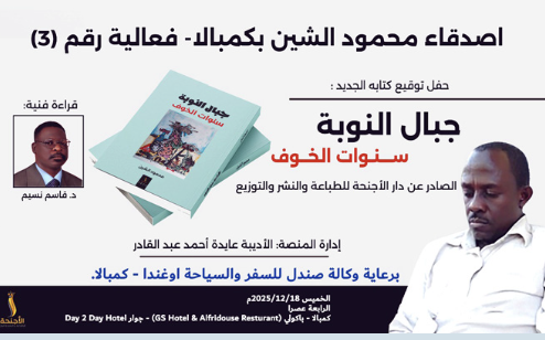 كمبالا: (ديسمبر) شهدت العاصمة الأوغندية كمبالا، يوم الخميس الموافق 18 ديسمبر 2025، حفل توقيع كتاب “جبال النوبة: سنوات الخوف” للكاتب والصحفي السوداني محمود الشين، وسط حضور ثقافي وإعلامي مميز، […]